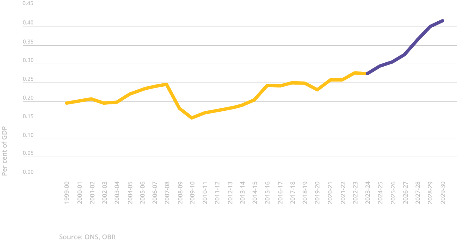 Inheritance tax, latest forecast. Showing IHT as % of GDP over time.
